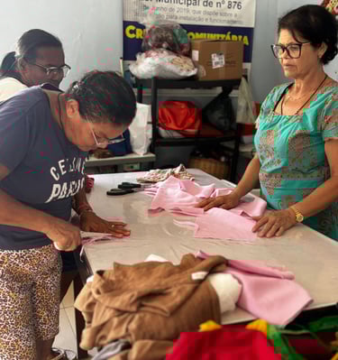 Oferecemos qualificação profissional para mães da creche e comunidade, gerando renda e fortalecendo vínculos sociais.